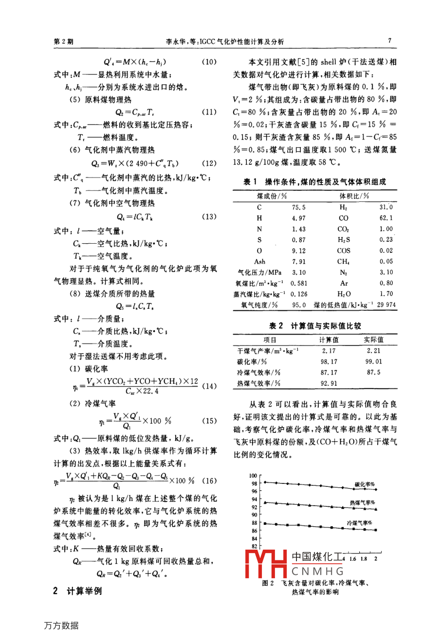 IGCC气化炉性能计算及分析