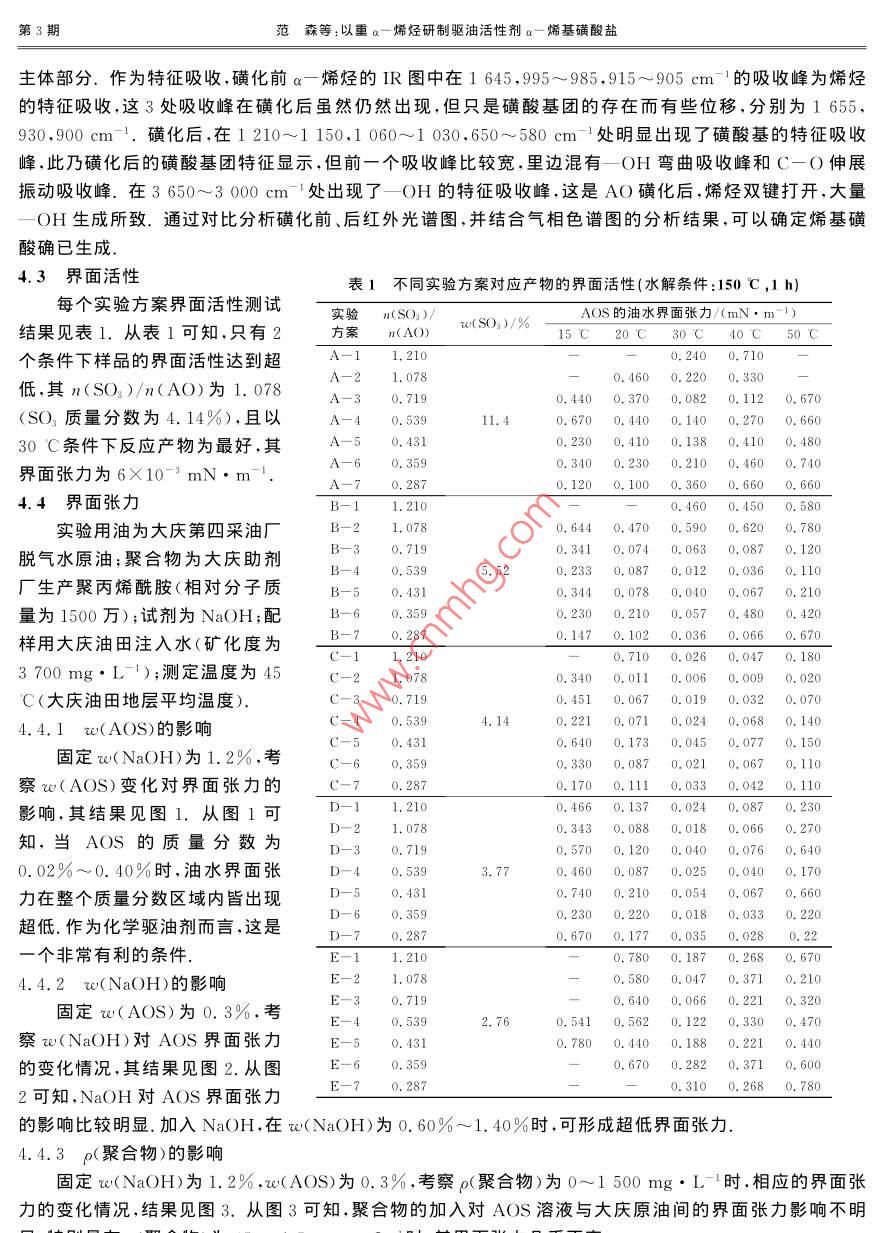 以重α-烯烃研制驱油活性剂α-烯基磺酸盐