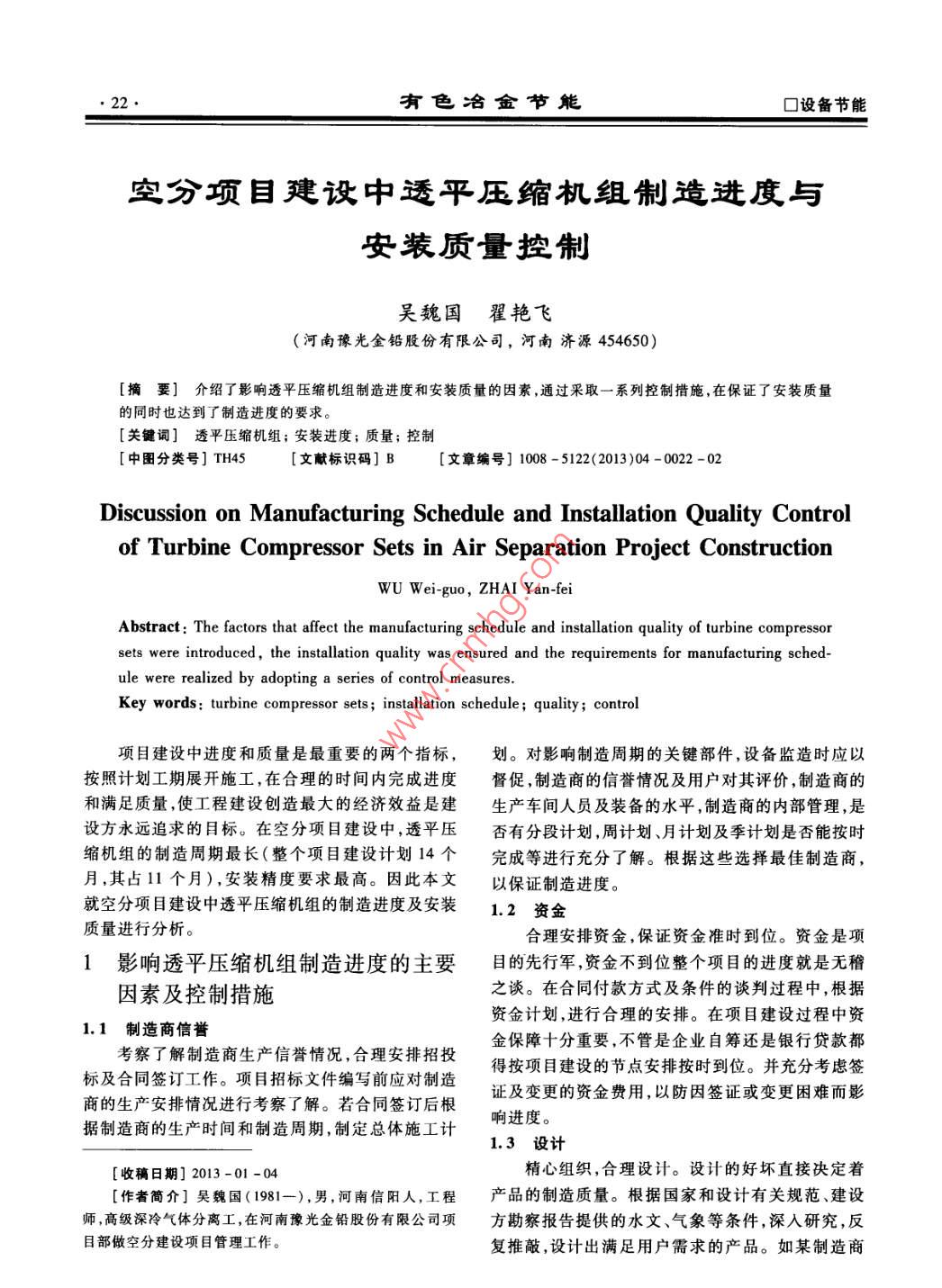 空分项目建设中透平压缩机组制造进度与安装质量控制