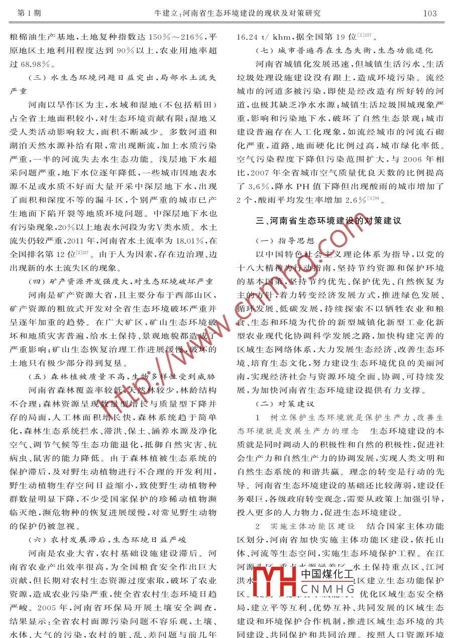 河南省生态环境建设的现状及对策研究