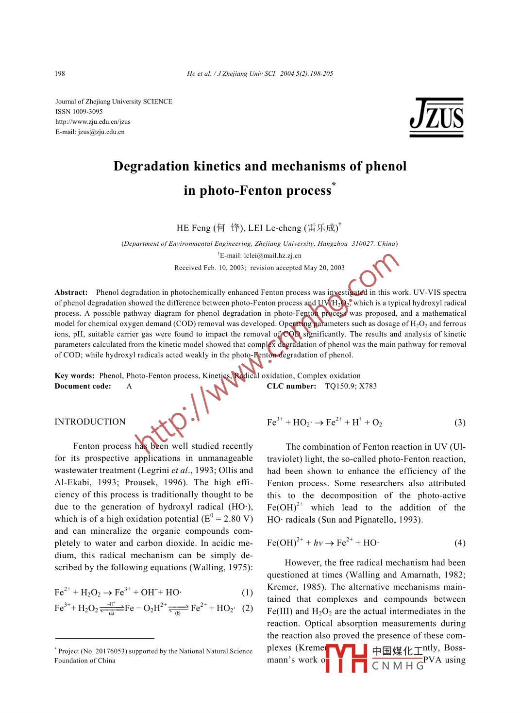 Degradation kinetics and mechanisms of phenol in photo-Fenton process