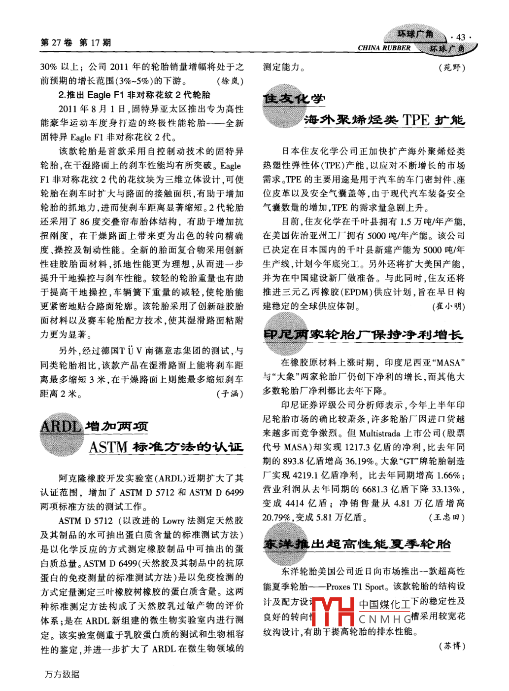 - 期刊名字:中国橡胶