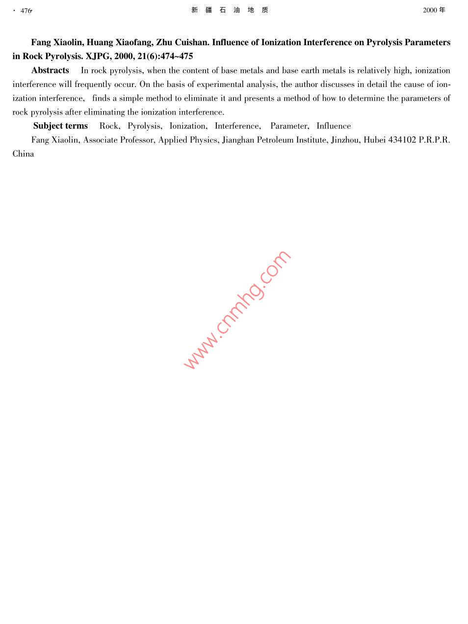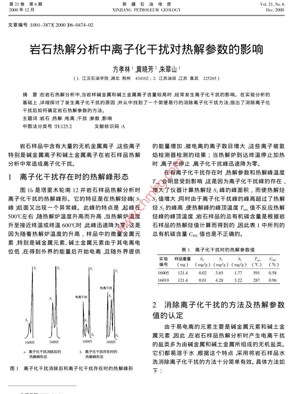岩石热解分析中离子化干扰对热解参数的影响
