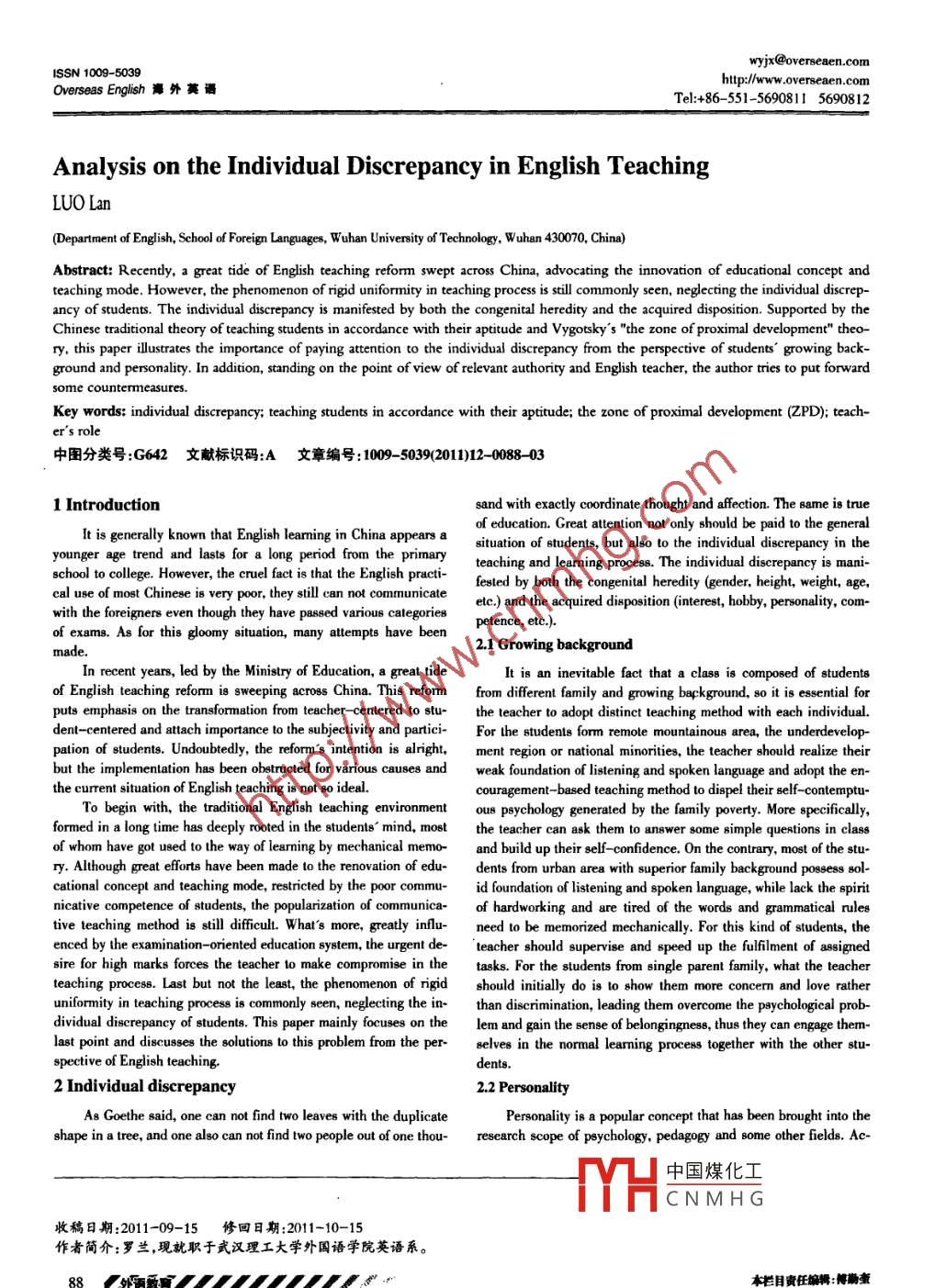 - 期刊名字:海外英语
