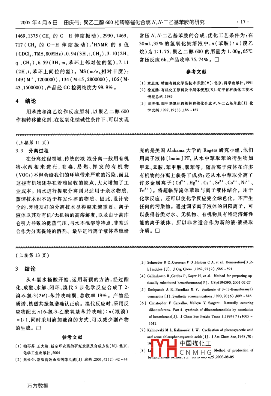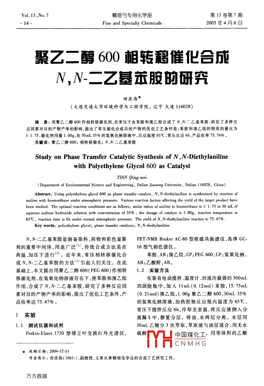 聚乙二醇600相转移催化合成N,N-二乙基苯胺的研究
