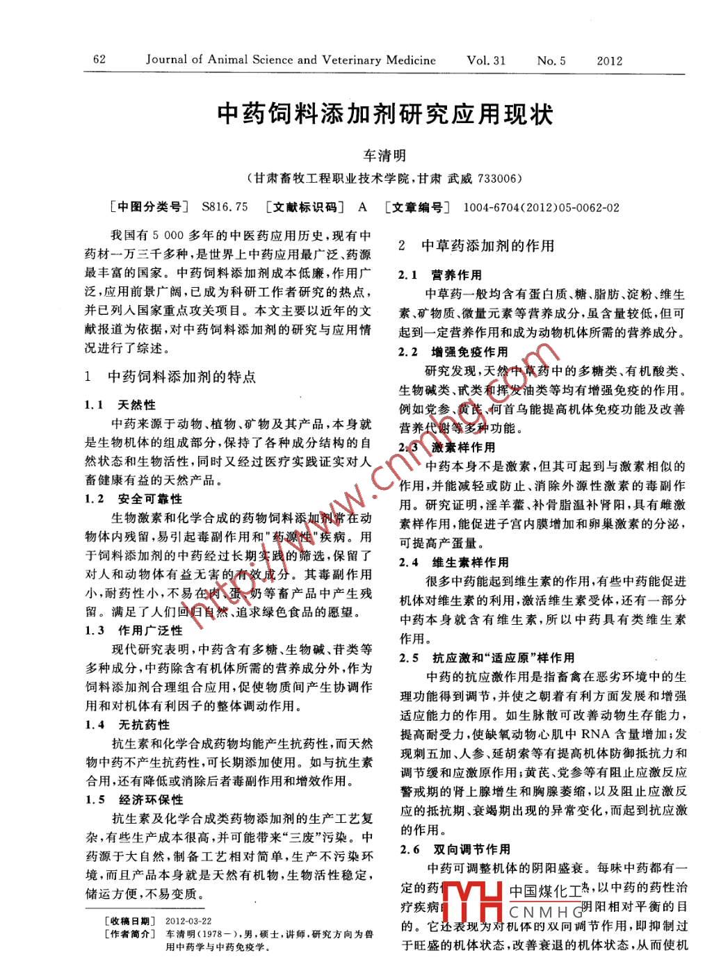 - 期刊名字:畜牧兽医杂志