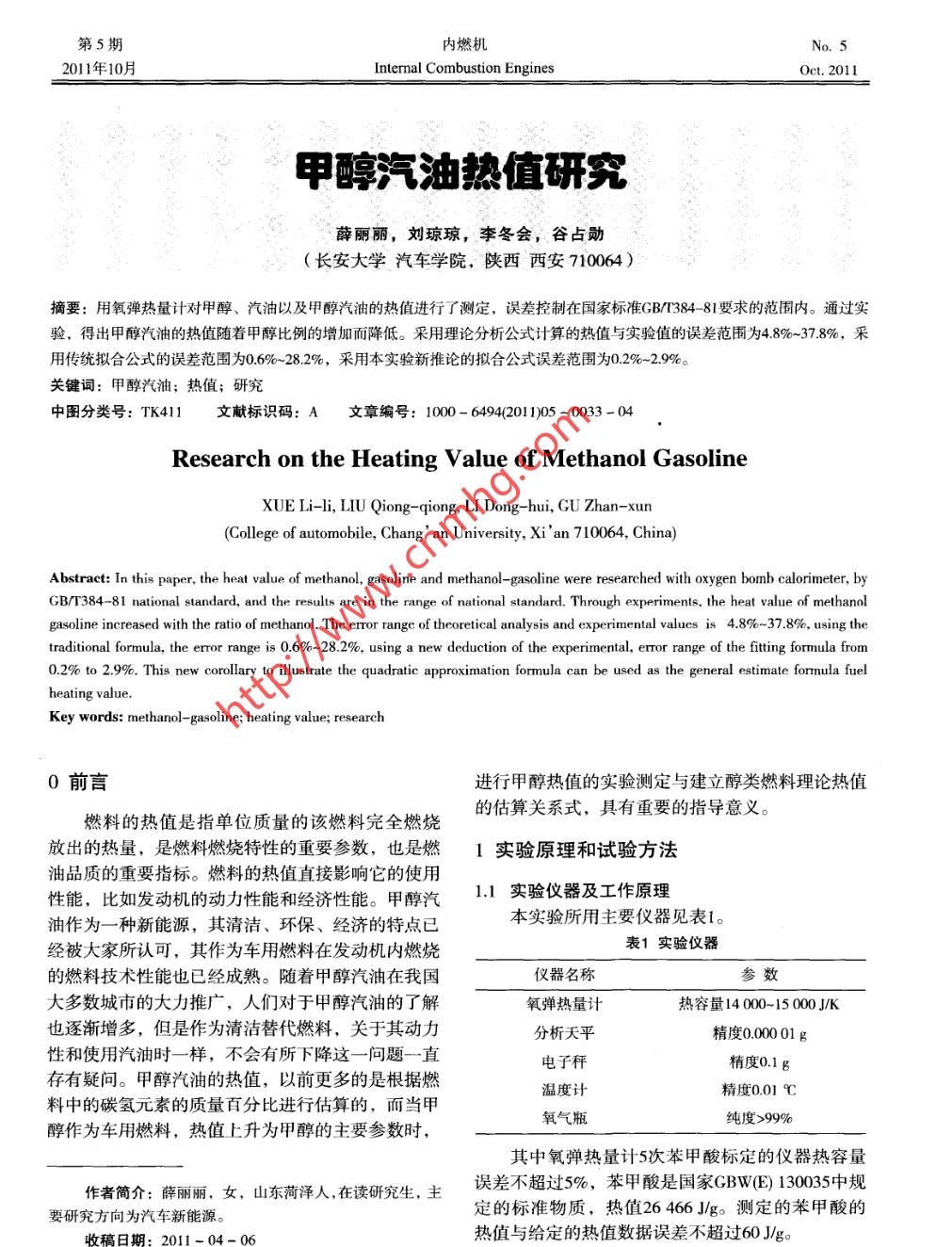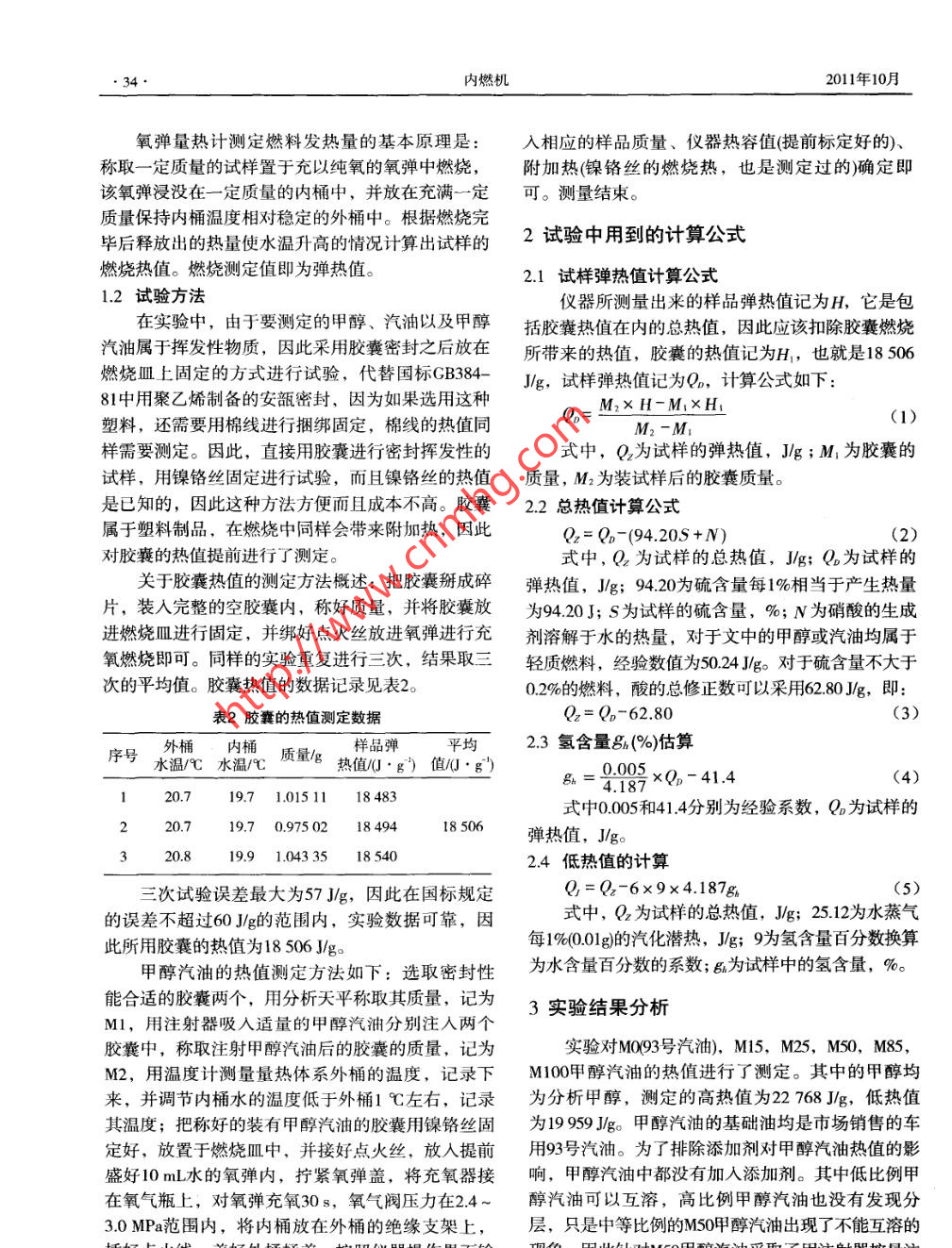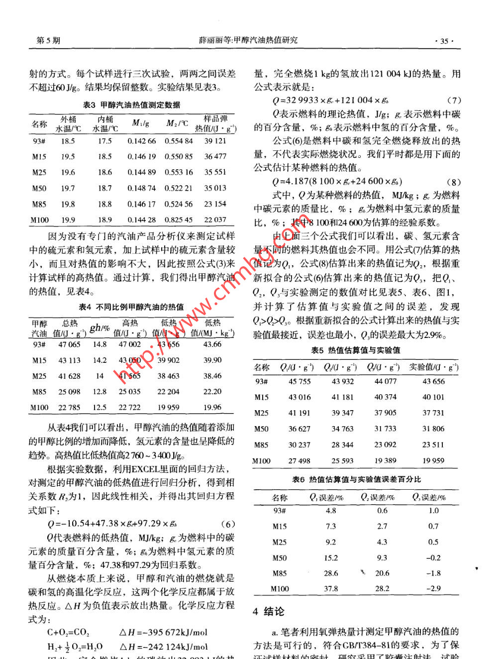 甲醇汽油热值研究