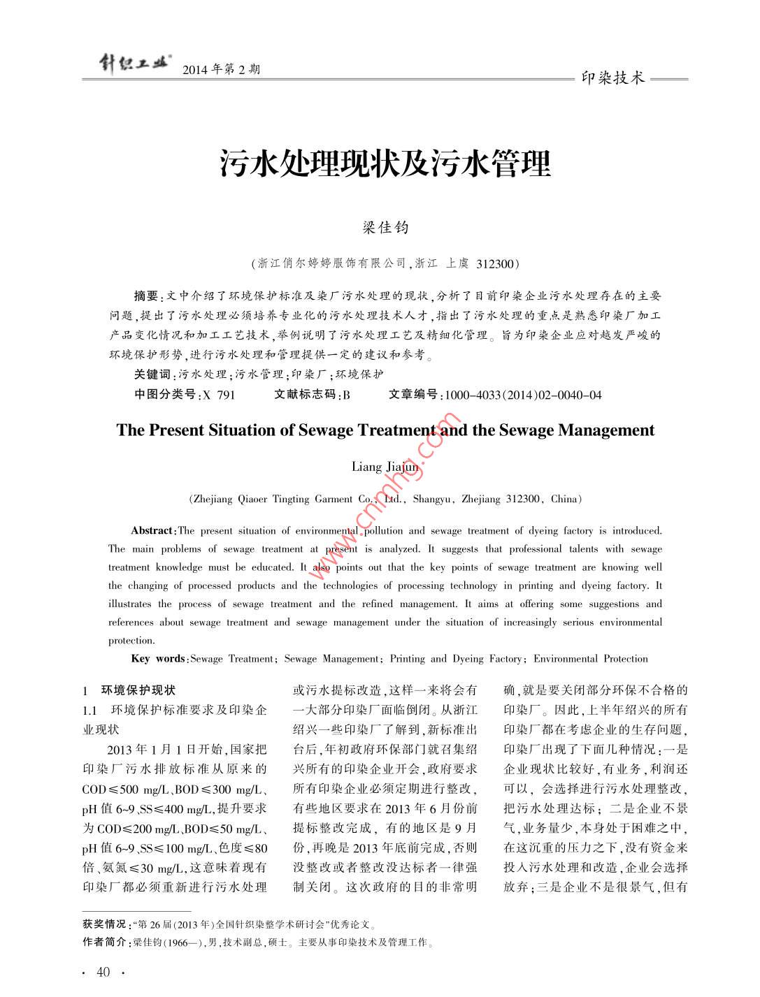 - 作者单位:浙江俏尔婷婷服饰有限公司