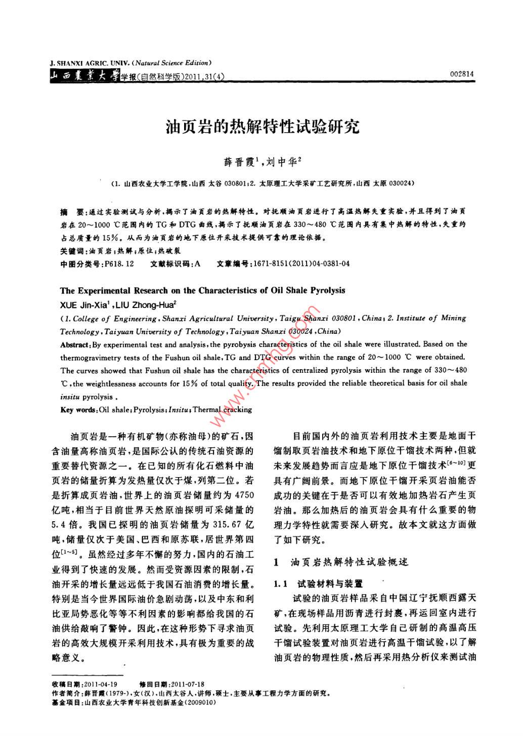 - 论文作者:薛晋霞,刘中华