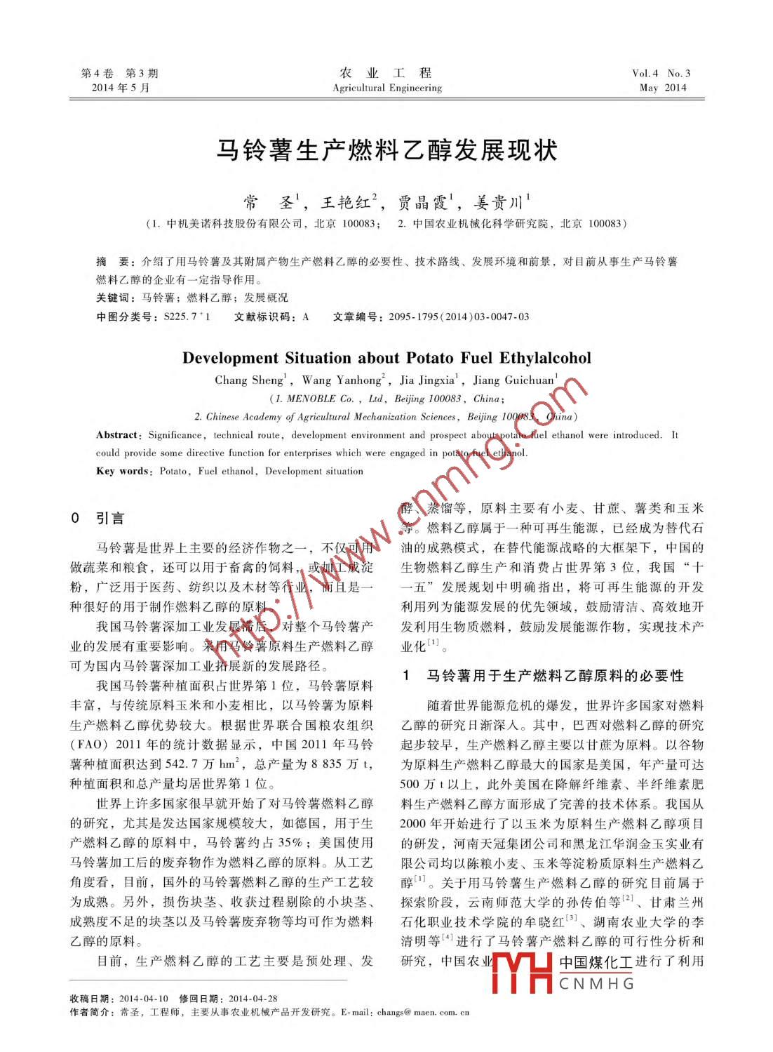 - 作者单位:中机美诺科技股份有限公司,中国农业机械化科学研究院
