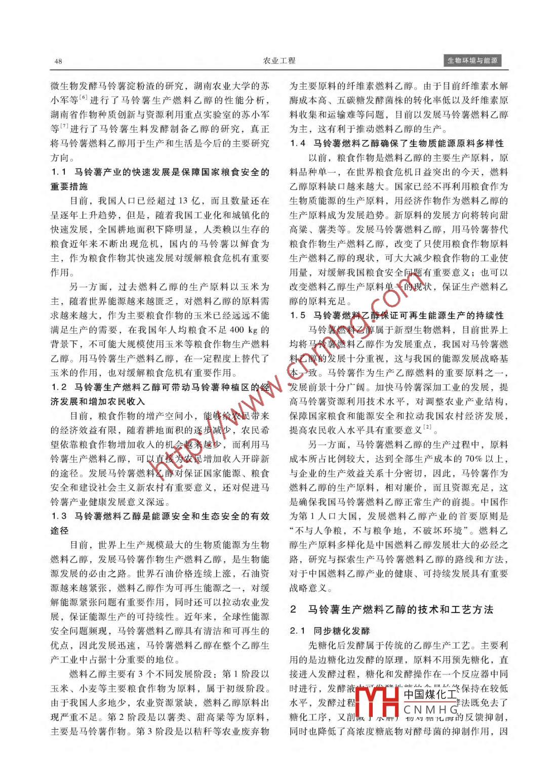 马铃薯生产燃料乙醇发展现状