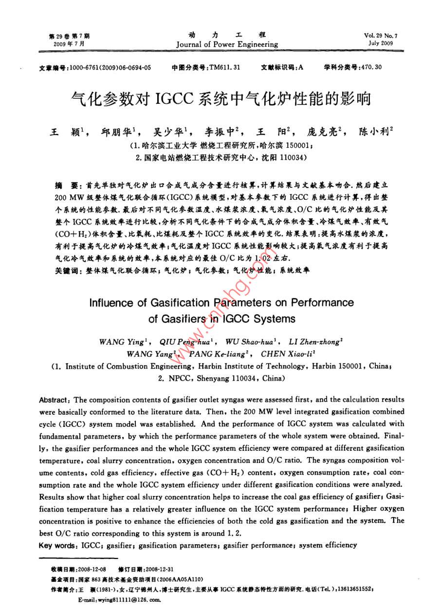 - 期刊名字:动力工程