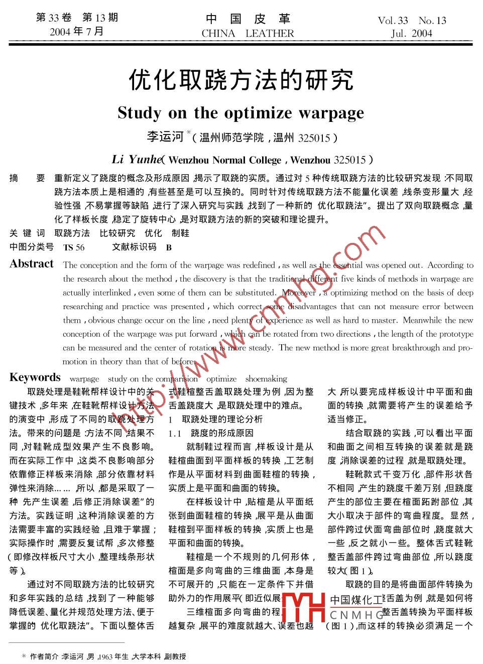 - 期刊名字:中国皮革