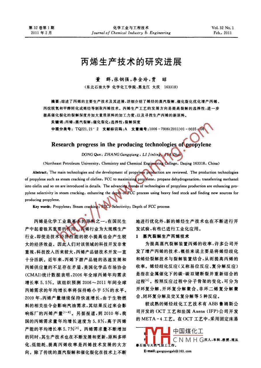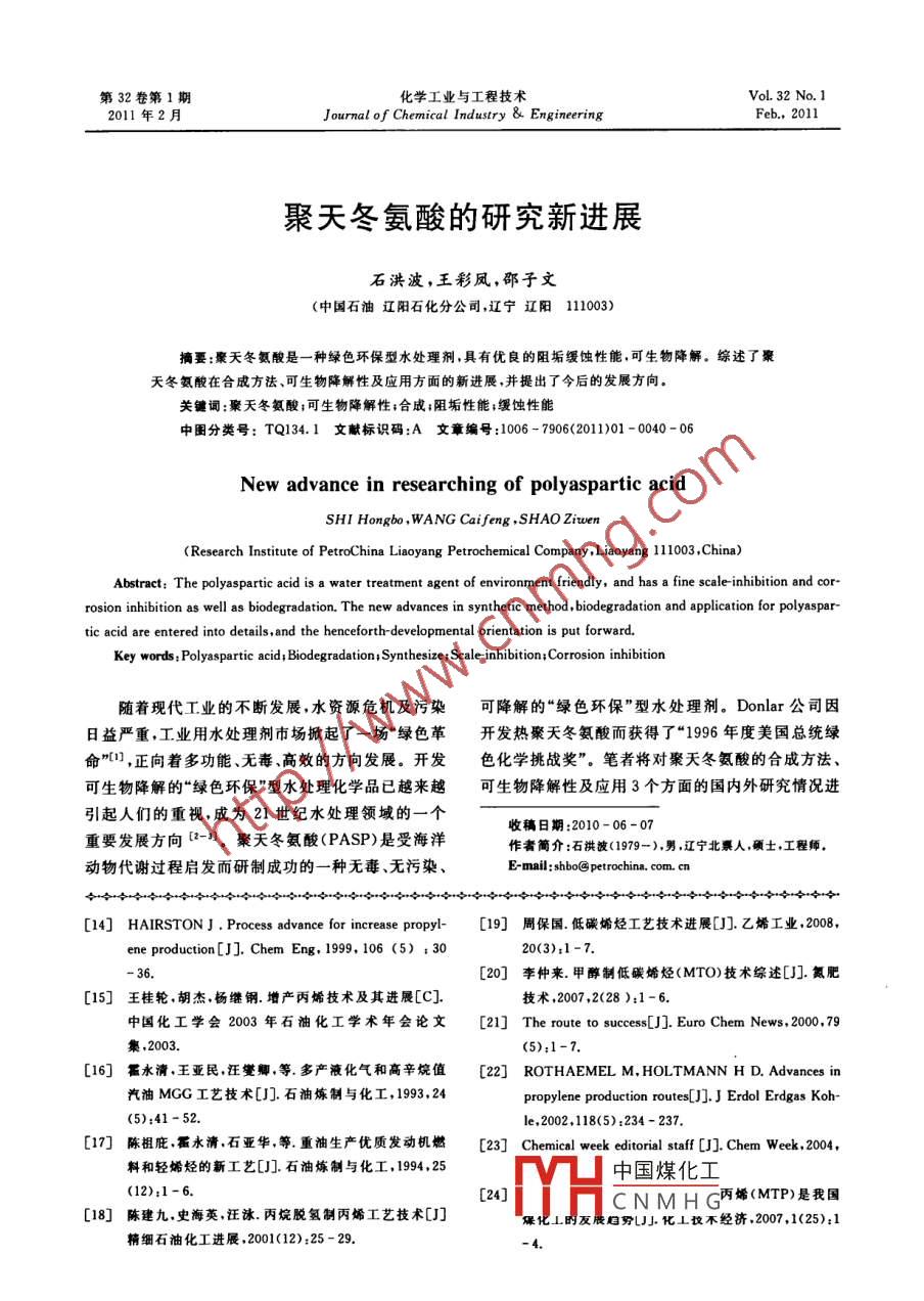 - 期刊名字:化学工业与工程技术