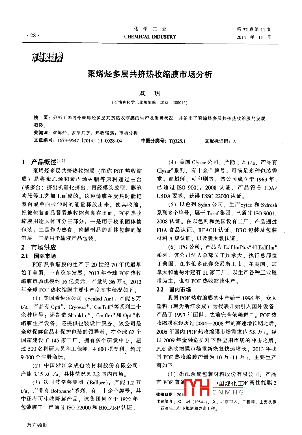 - 期刊名字:化学工业
