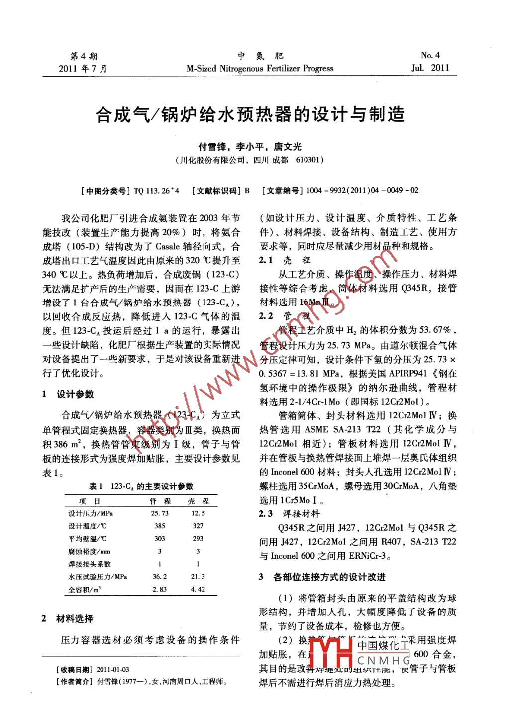 合成气/锅炉给水预热器的设计与制造