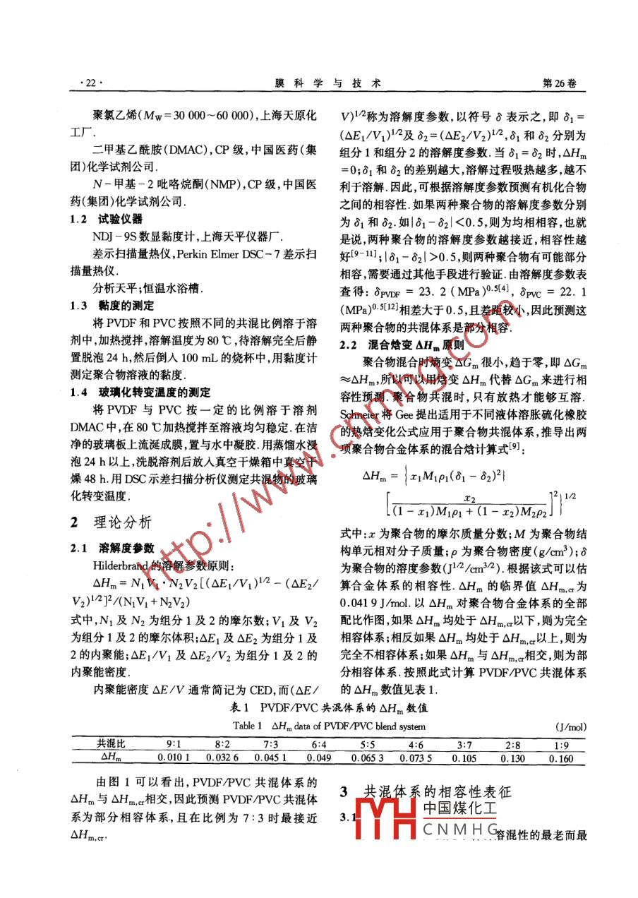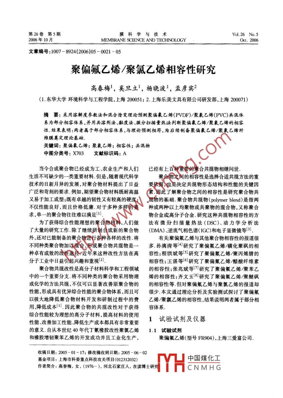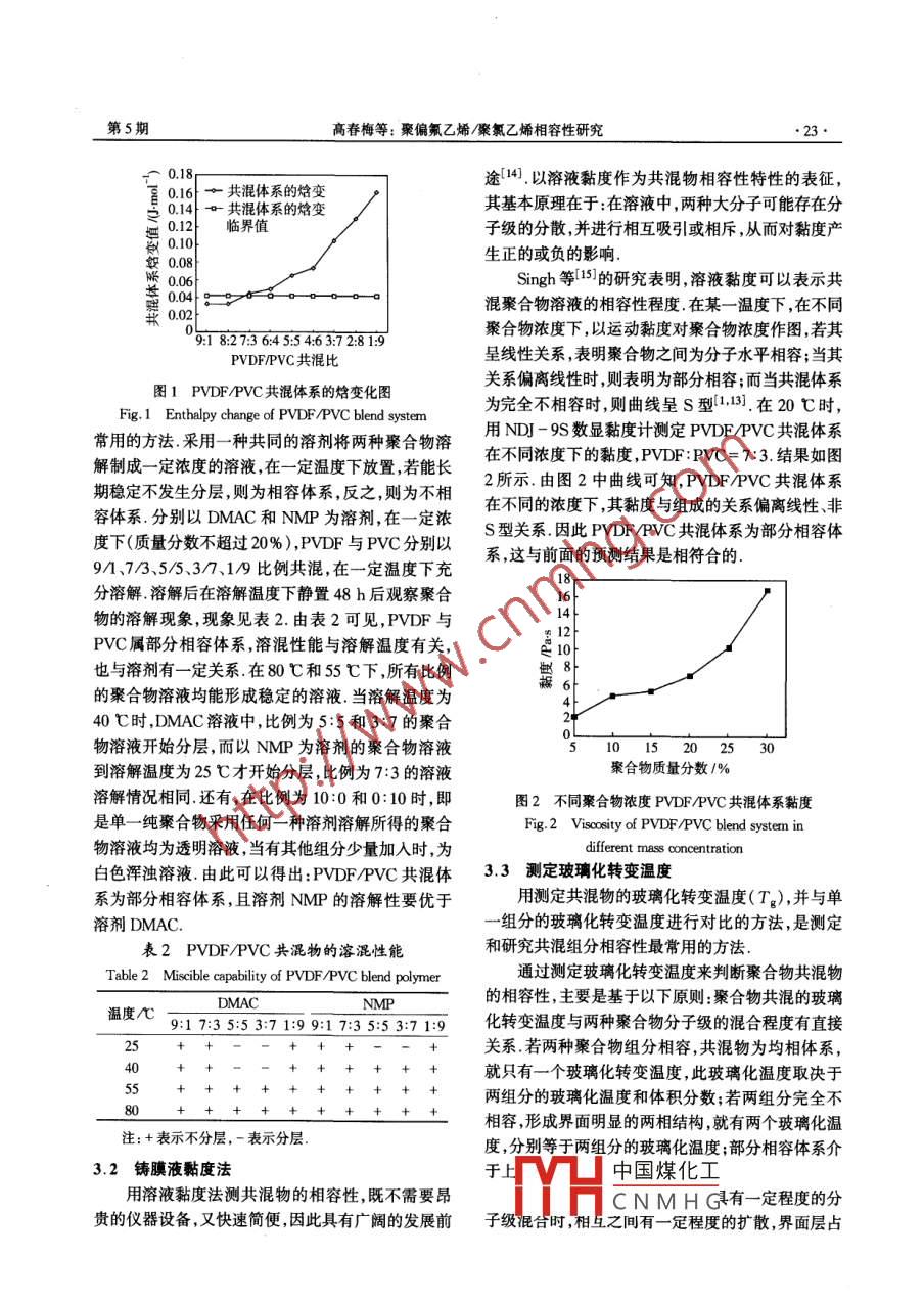 聚偏氟乙烯/聚氯乙烯相容性研究