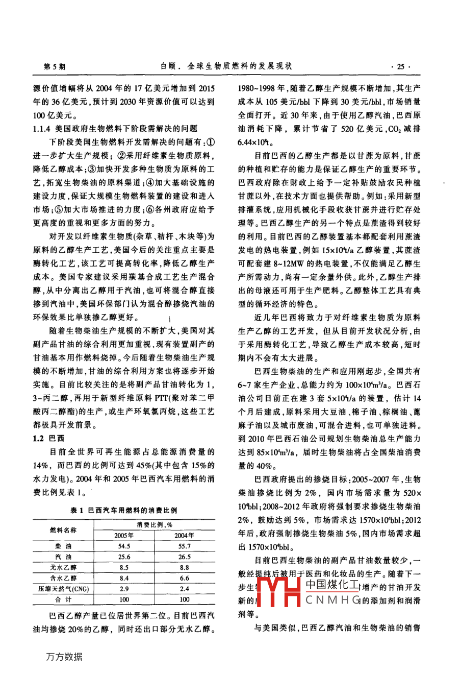全球生物质燃料的发展现状