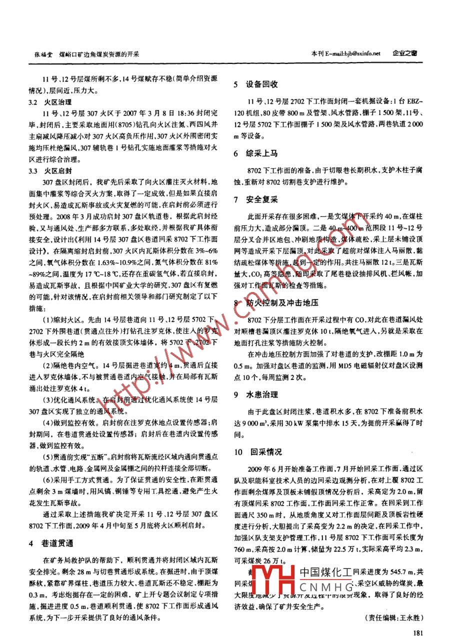 煤峪口矿边角煤炭资源的开采