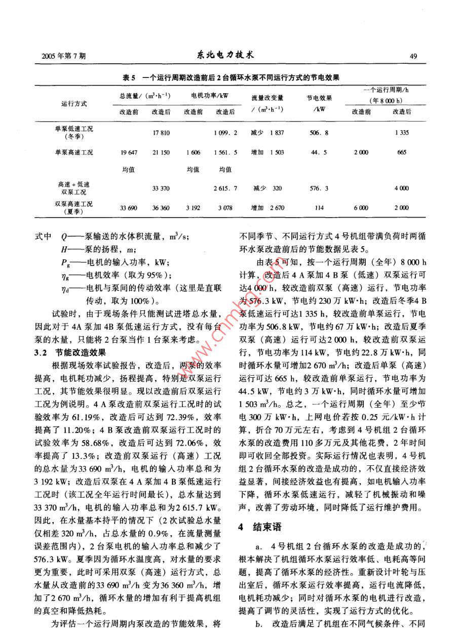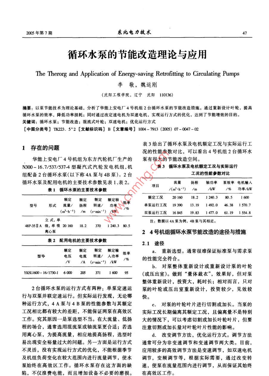 循环水泵的节能改造理论与应用