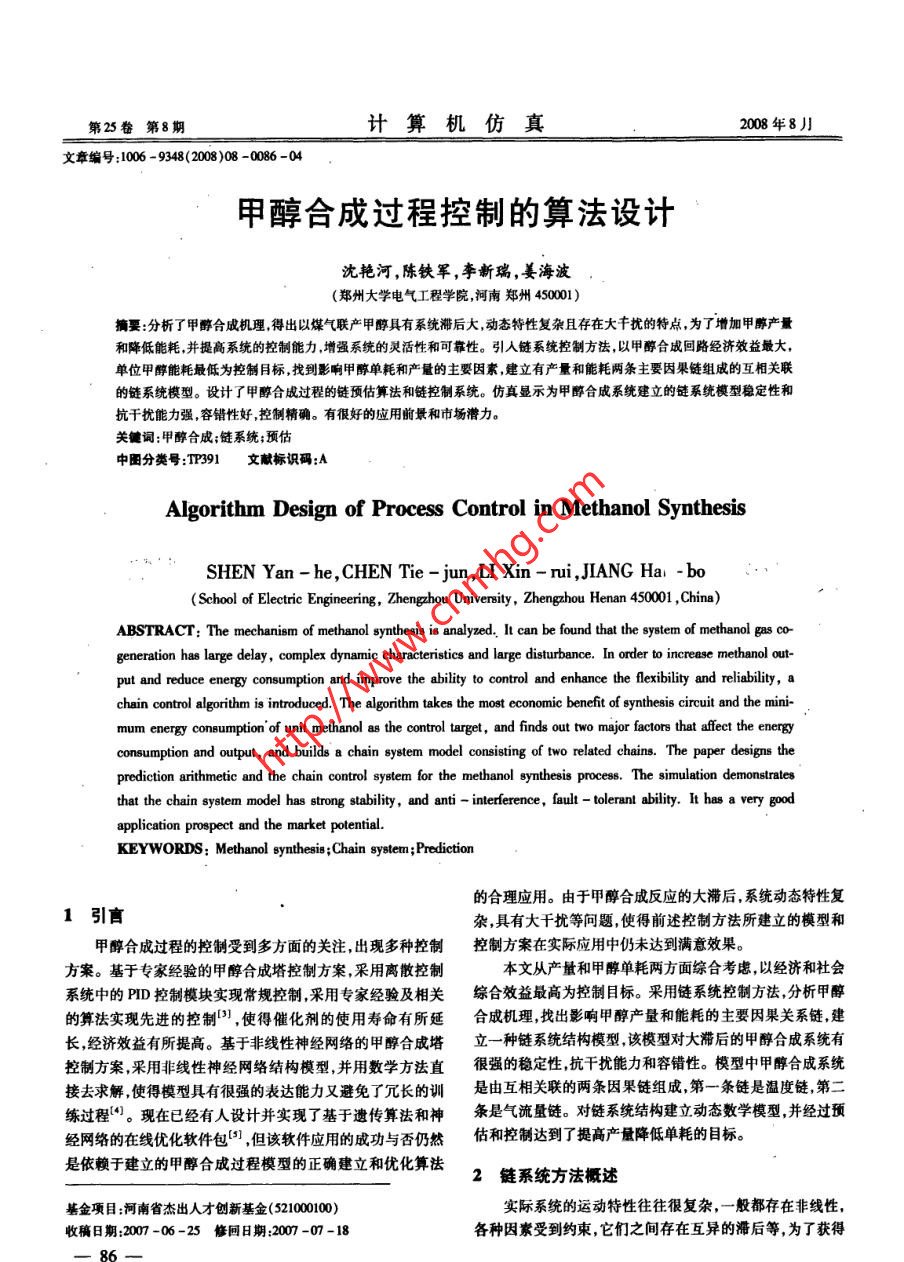 甲醇合成过程控制的算法设计