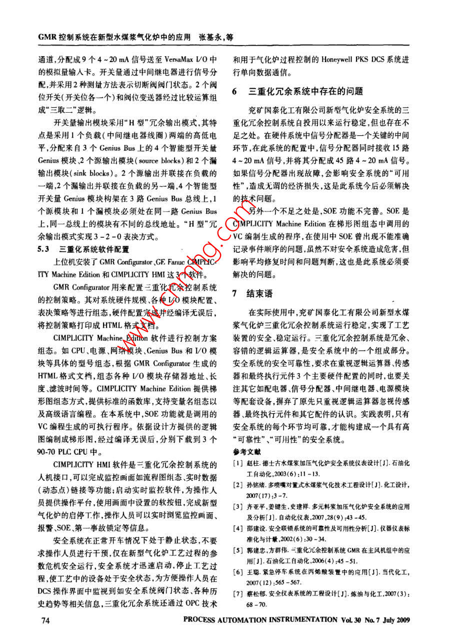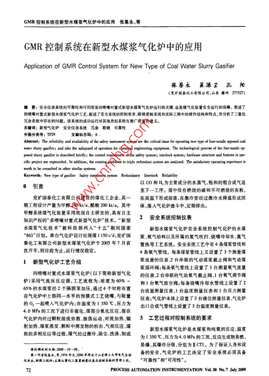 GMR控制系统在新型水煤浆气化炉中的应用