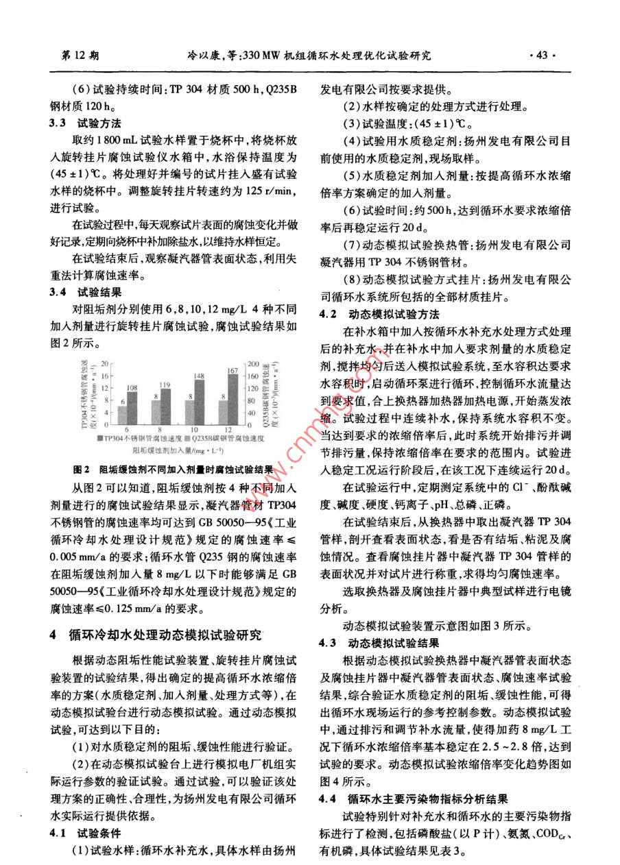330 MW机组循环水处理优化试验研究