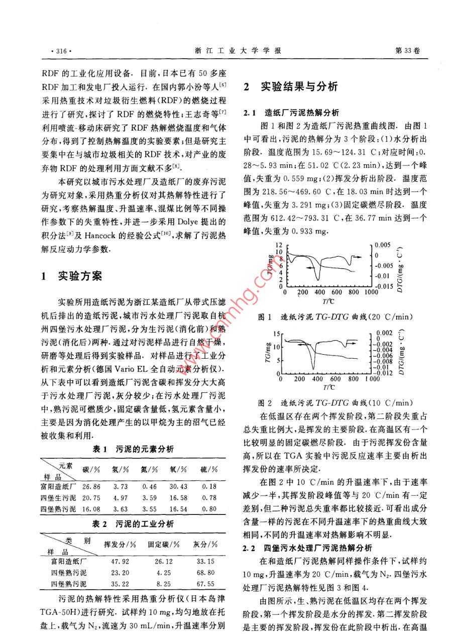 污泥的热解特性实验研究
