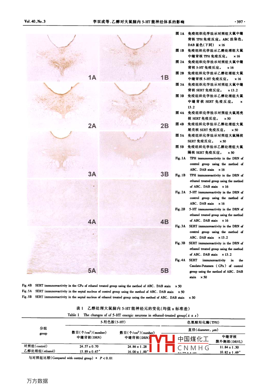乙醇对大鼠脑内5-HT能神经体系的影响