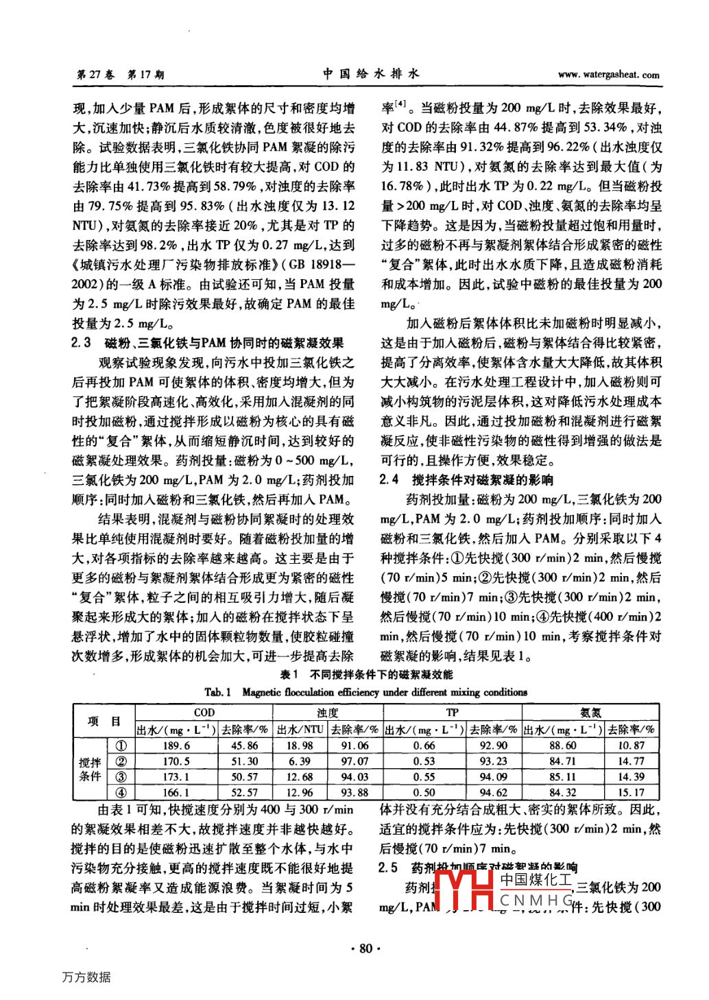 磁絮凝强化污水处理的试验研究