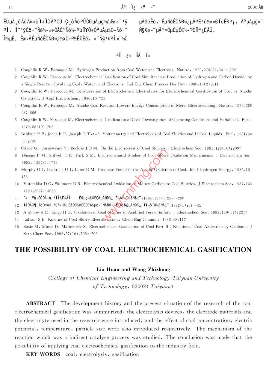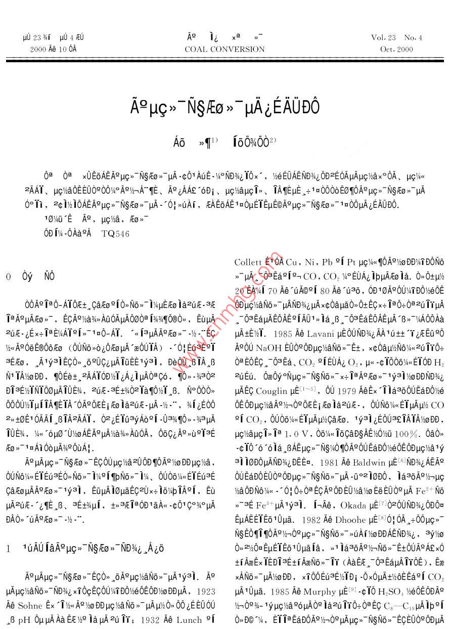 - 期刊名字:煤炭转化