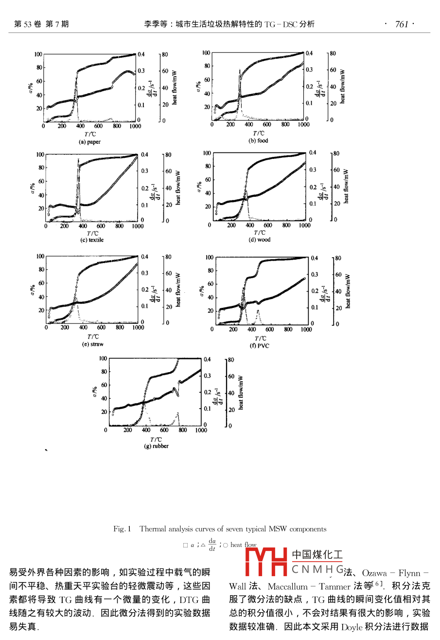 城市生活垃圾热解特性的TG-DSC分析
