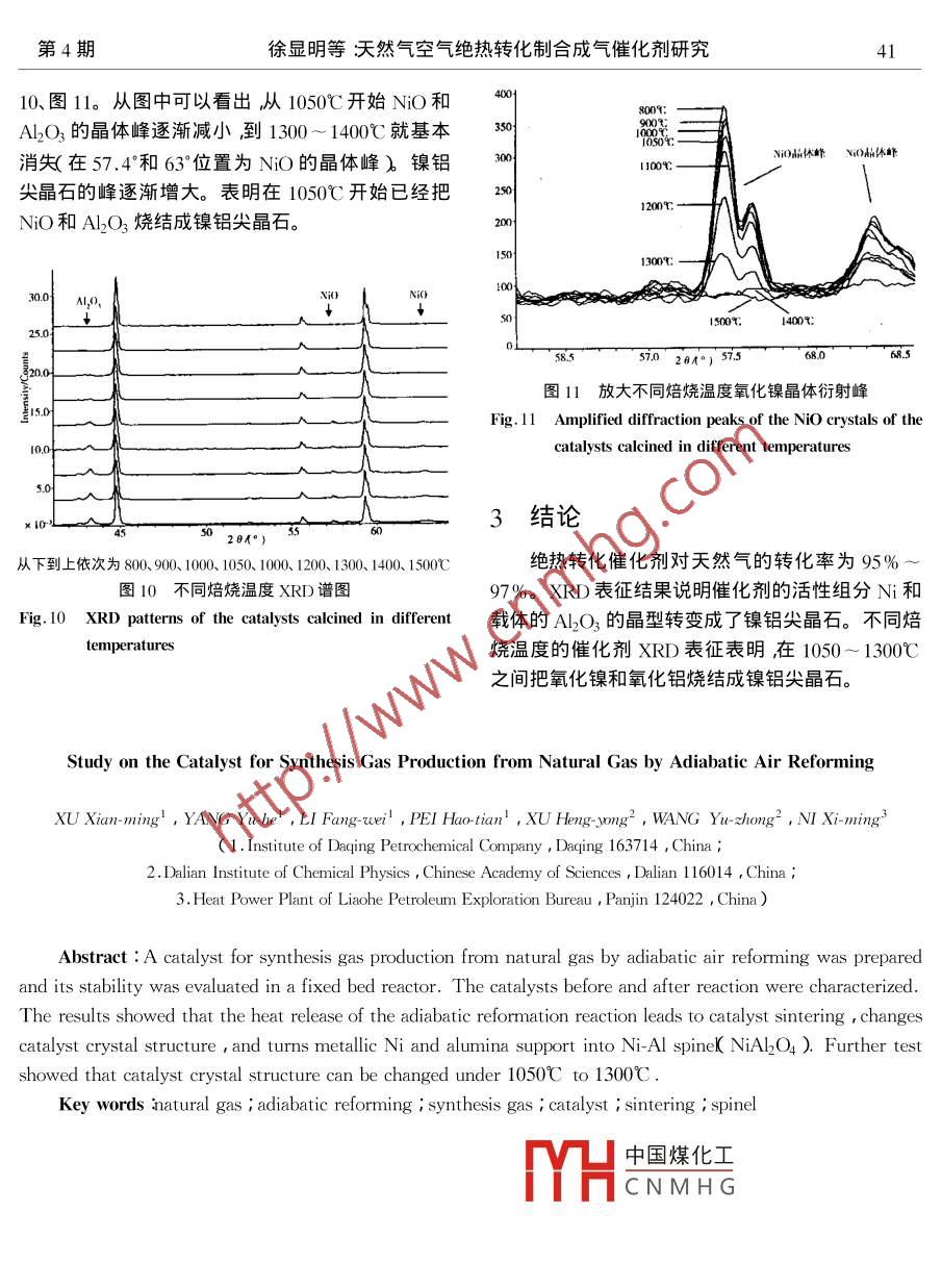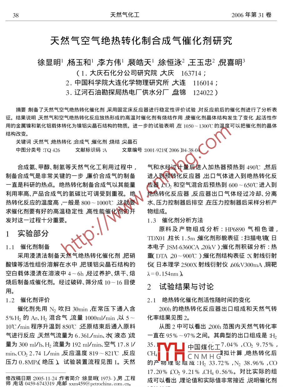 天然气空气绝热转化制合成气催化剂研究