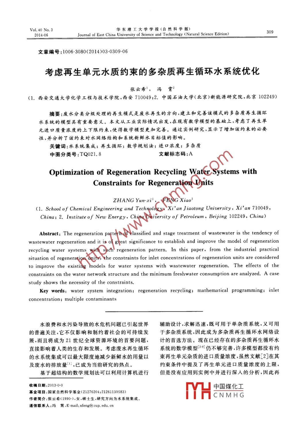 考虑再生单元水质约束的多杂质再生循环水系统优化