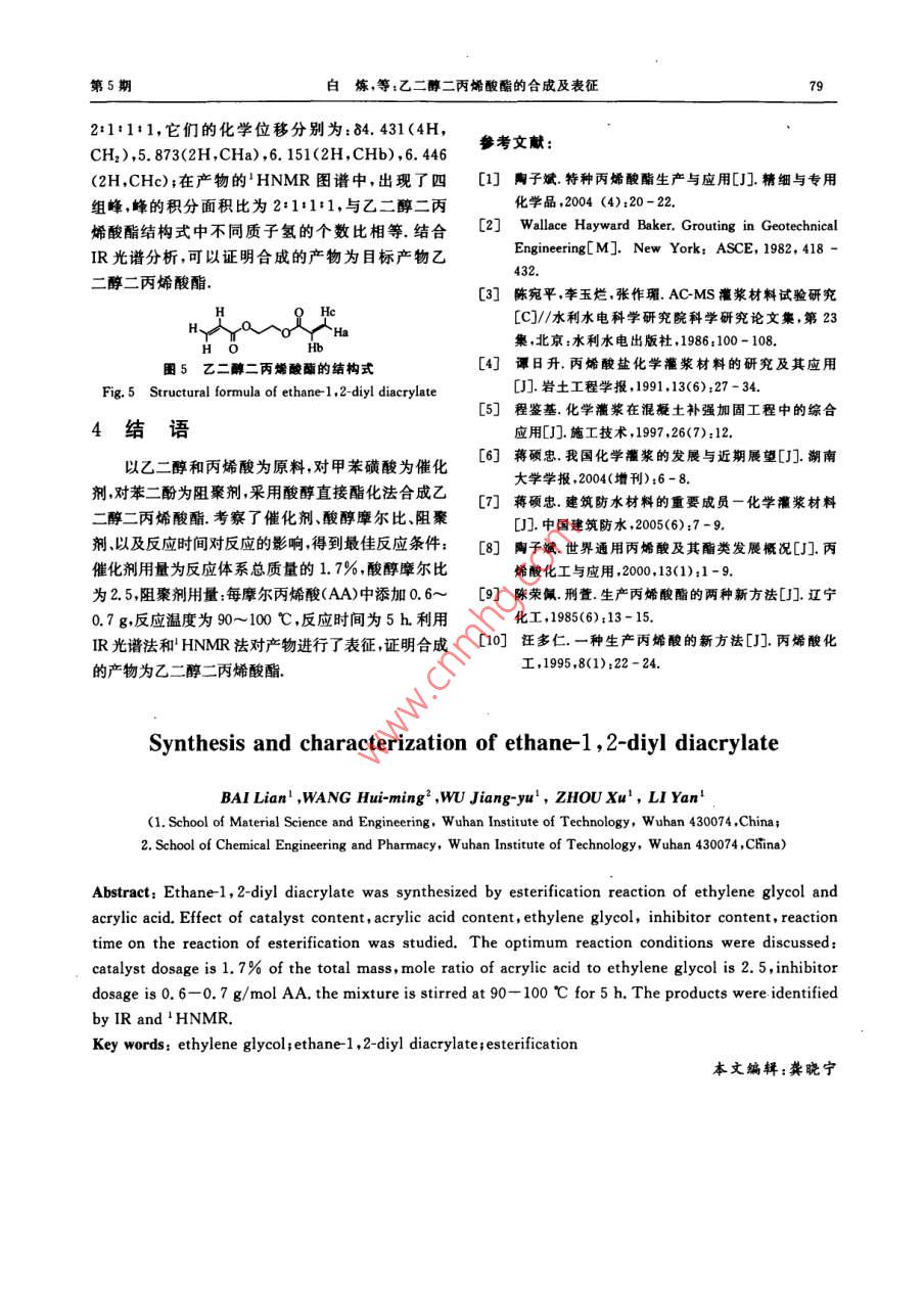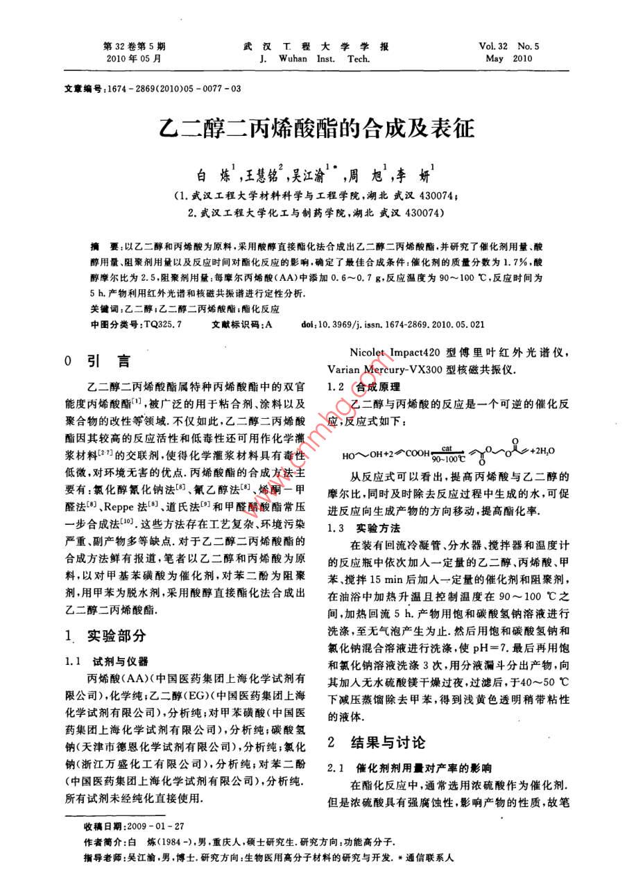 乙二醇二丙烯酸酯的合成及表征