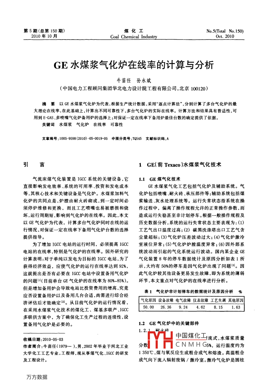 四喷嘴水煤浆气化炉工业应用情况简介 2020-06-12