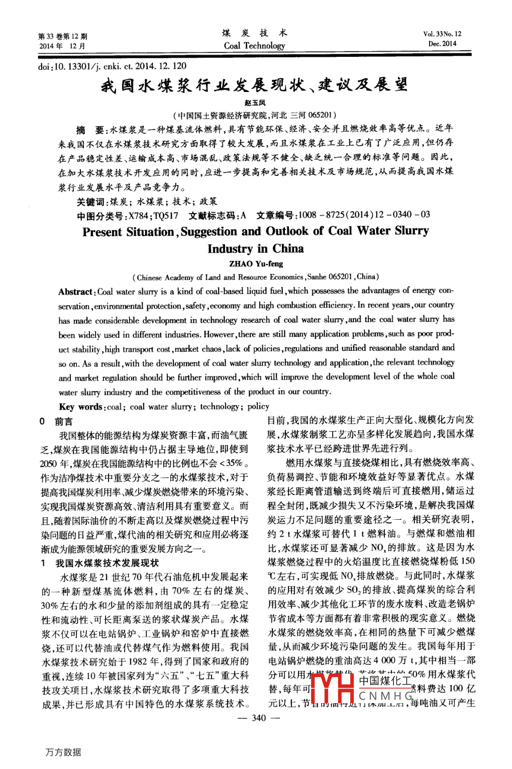 我国水煤浆行业发展现状、建议及展望