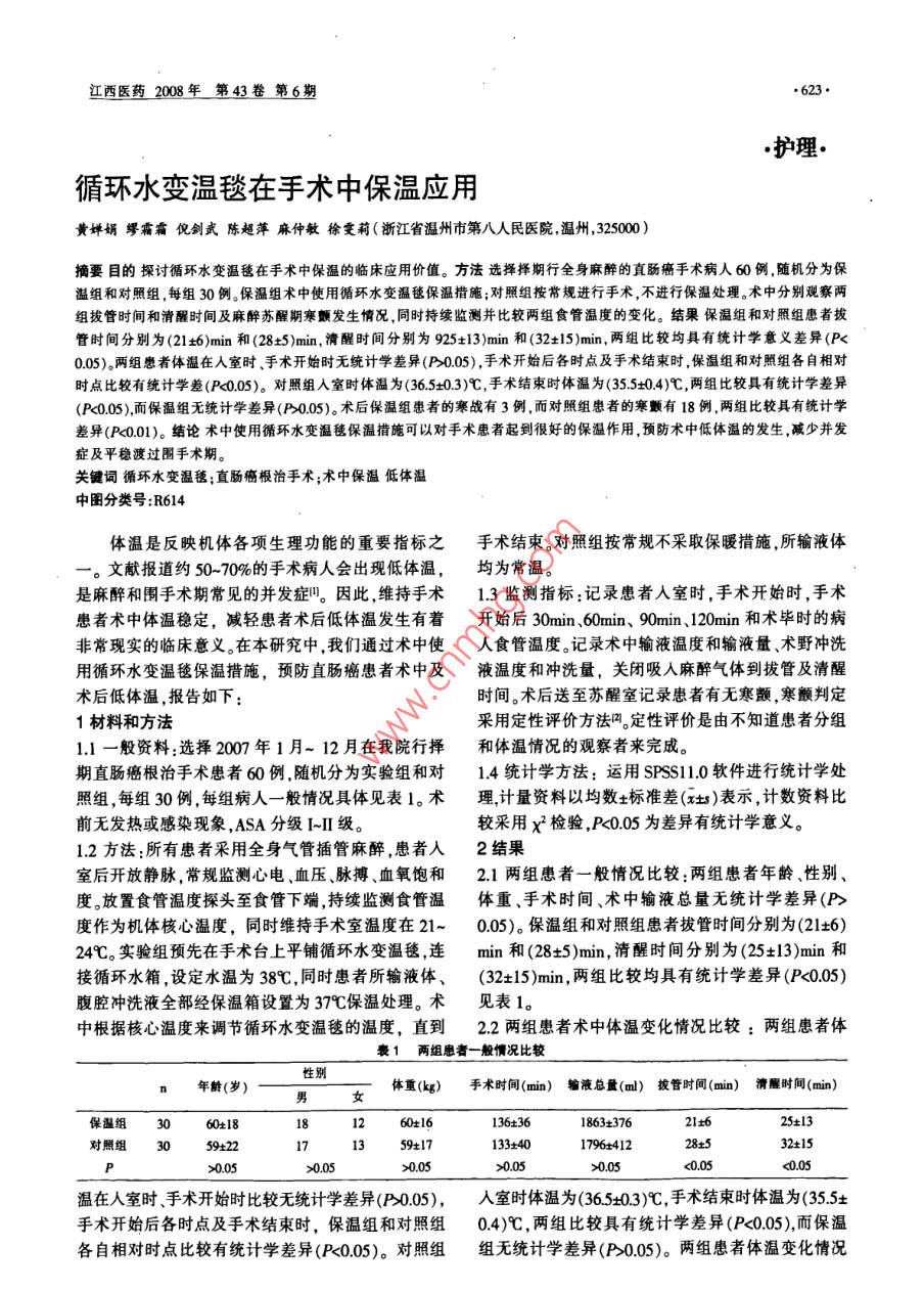 循环水变温毯在手术中保温应用