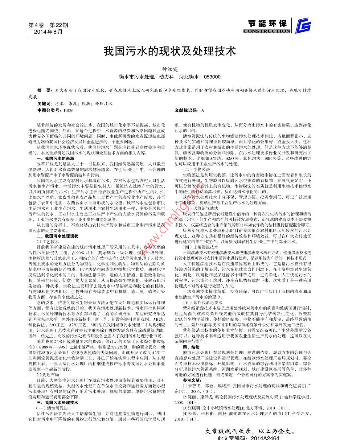我国污水的现状及处理技术