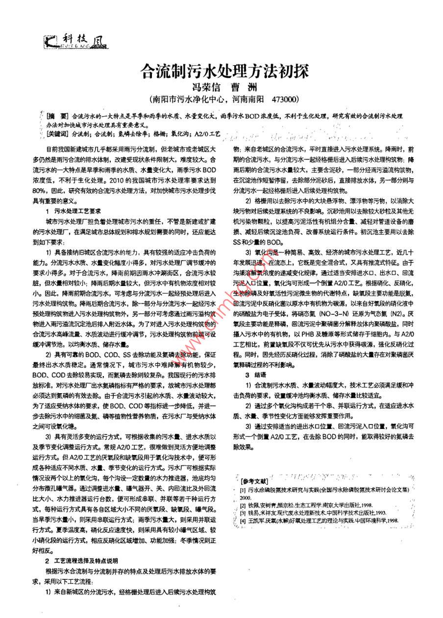 合流制污水处理方法初探