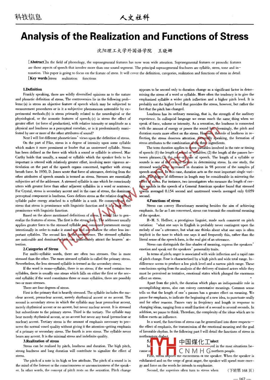 Analysis of the Realization and Functions of Stress