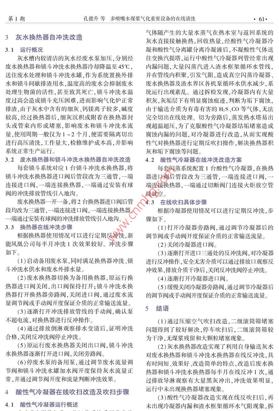 多喷嘴水煤浆气化重要设备的在线清洗