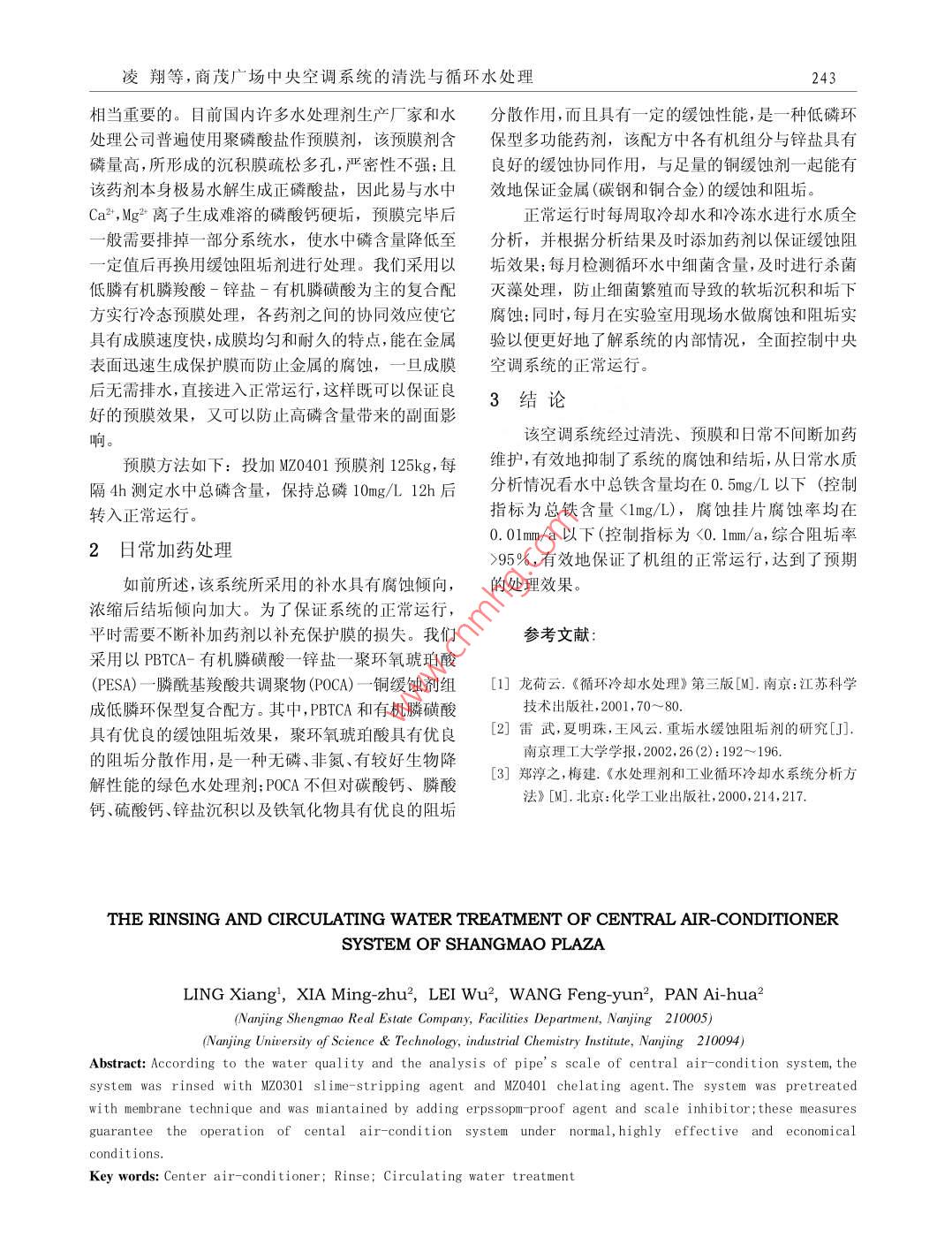 商茂广场中央空调系统的清洗与循环水处理
