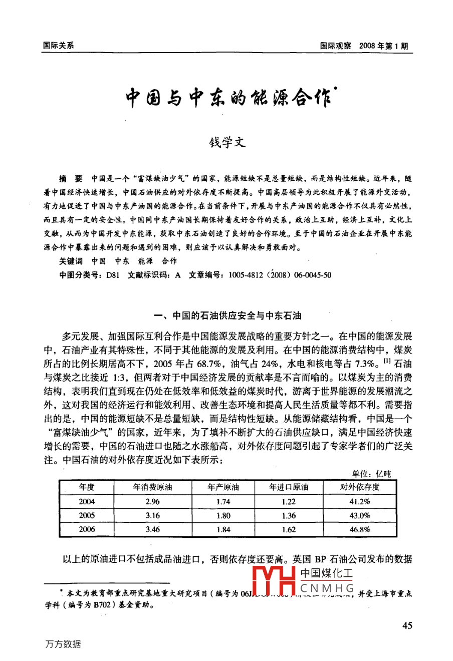 中国与中东的能源合作