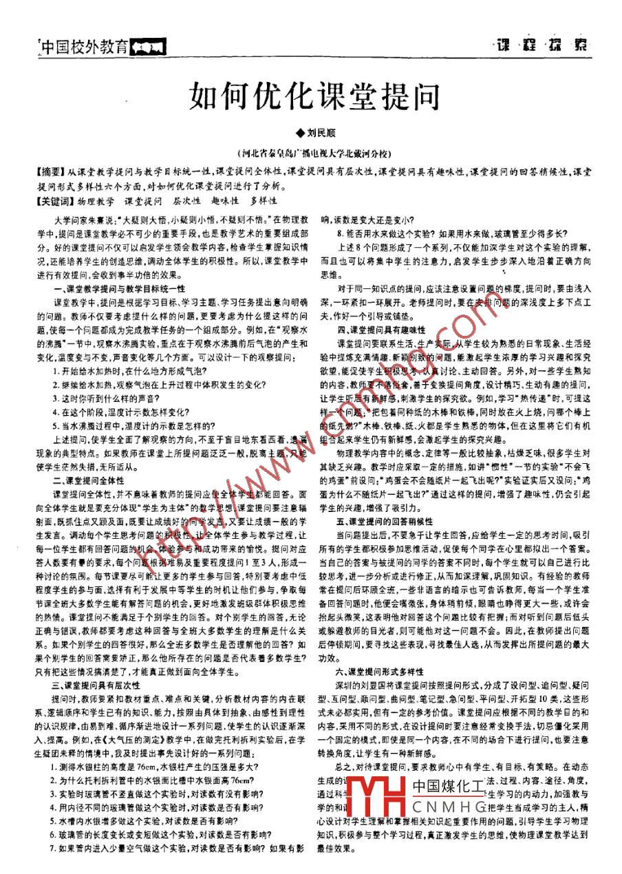 - 期刊名字:中国校外教育(基教版)
