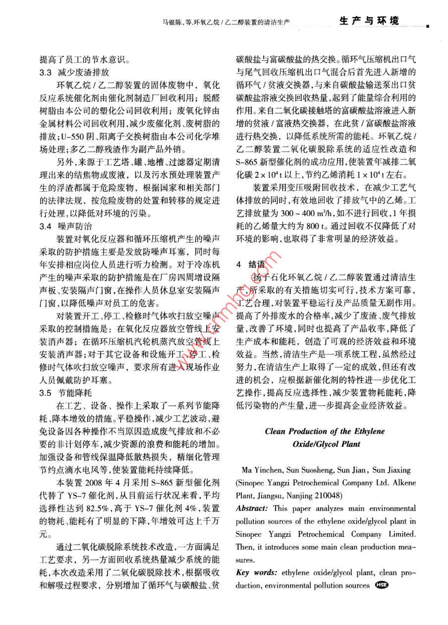 环氧乙烷/乙二醇装置的清洁生产