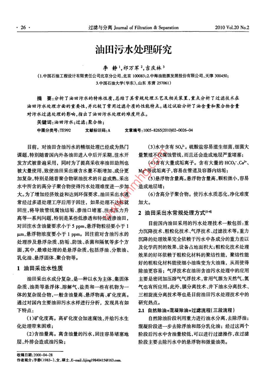 油田污水处理研究