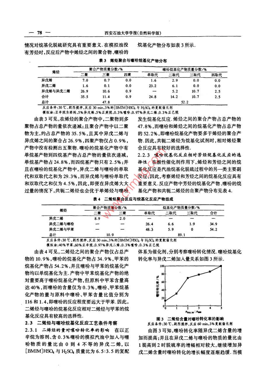 二烯烃与噻吩烷基化反应研究