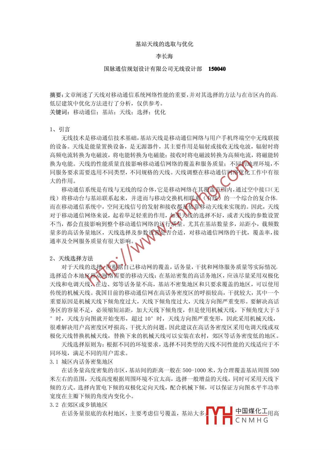 - 作者单位:国脉通信规划设计有限公司无线设计部