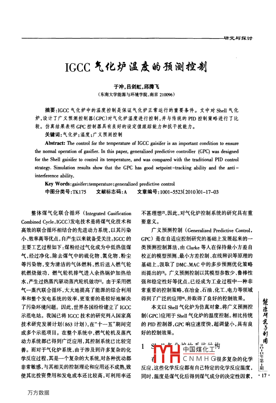 IGCC气化炉温度的预测控制